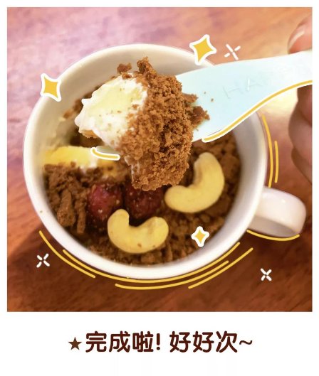 最 后 在盆栽土的表面撒上健康又有口感的坚果,用保鲜袋封好后放入冰箱冷藏。要吃的时候再取出来,就是一杯可以媲美甜品店的盆栽蛋糕啦!