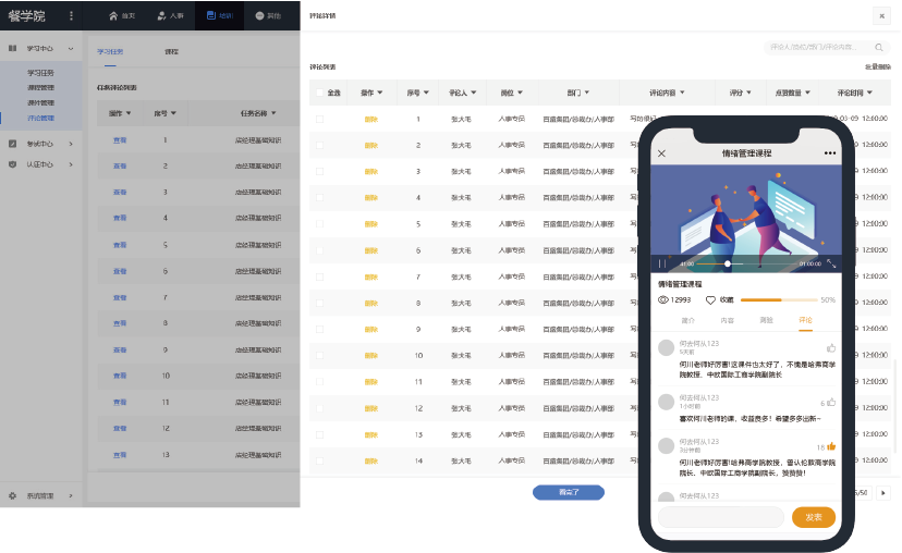 课程内容结合一线营运实际经验,通过员工评论反馈进行课程优化,企业建立自己的培训题材库。