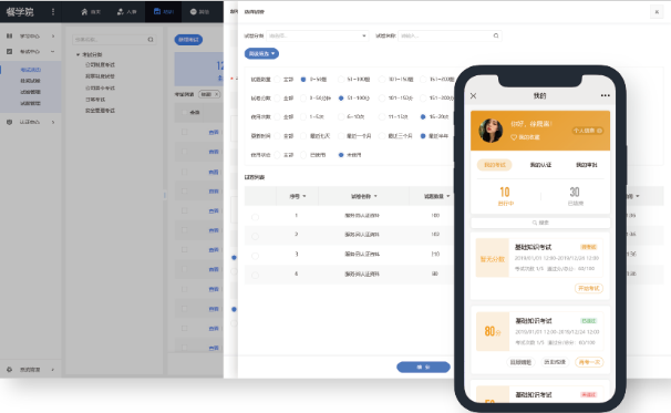 餐学网是乐才(北京)科技有限公司旗下产品,、以人才选拔与认证为核心的自动化学习平台,它包含学习活动的发布与管理,课程课件管理,考试活动发布与管理,试卷试题管理,阅卷管理,人才标准及认证管理等功能。更是在手机端的设计研发上增强了员工的使用体验,员工学习路径清晰明了,系统自动发布与跟踪,业务短板一图分明,彻底解决员工的培训参与度低,岗位胜任度差的问题,进而降低企业培训成本,提升培训效率。