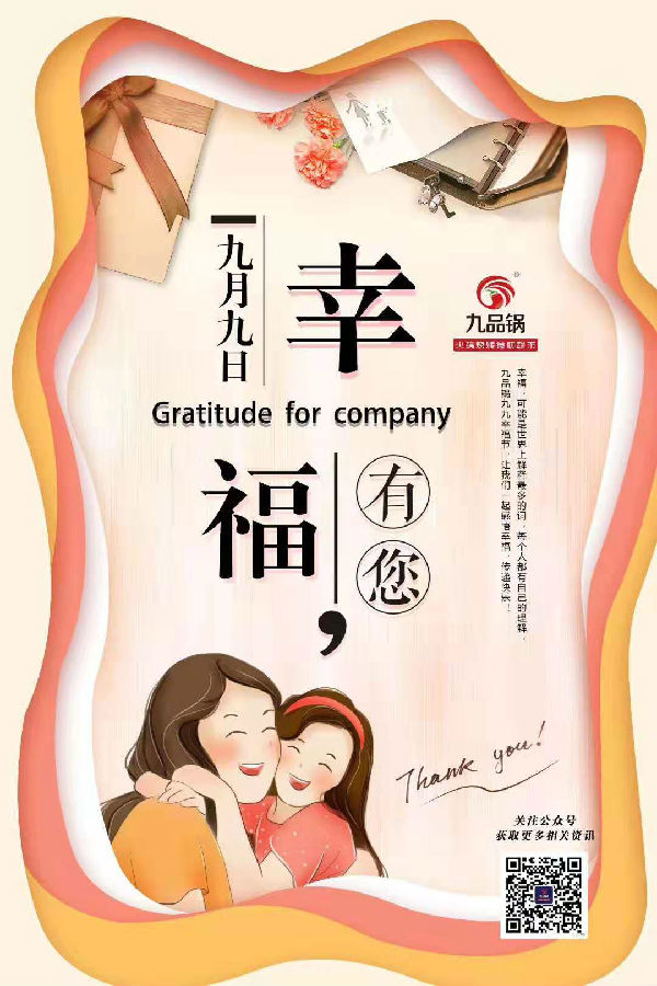 2019年9月9日,是一年一度的九品锅9.9幸福节,今年9.9幸福节的主题为:幸福的陪伴,买回家吃饭。并为顾客准备了超级大礼,成为幸福大使将会获得10000元奖金,幸福达人则将获得3000元奖金。