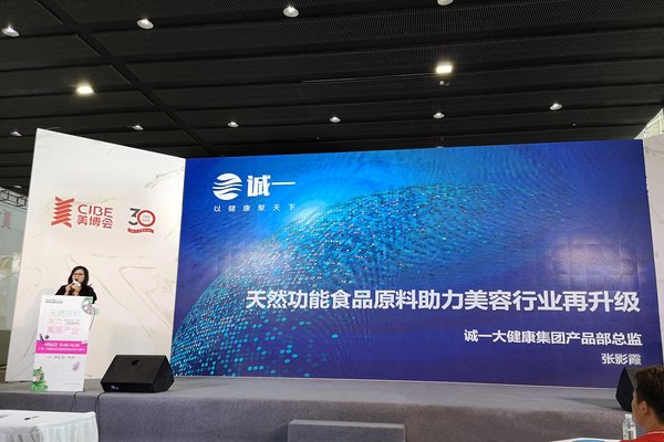 诚一大健康集团产品总监张影霞在“天然原料发力美丽产业”论坛上发表演讲