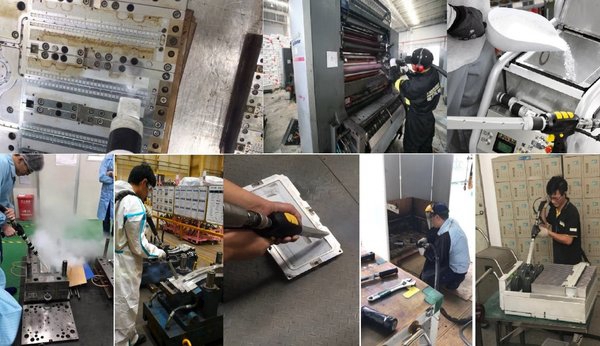 干冰清洗的原料消耗成本低、设备停机时间短、污水处理及试模次数少,综合成本和效率完胜传统方式。