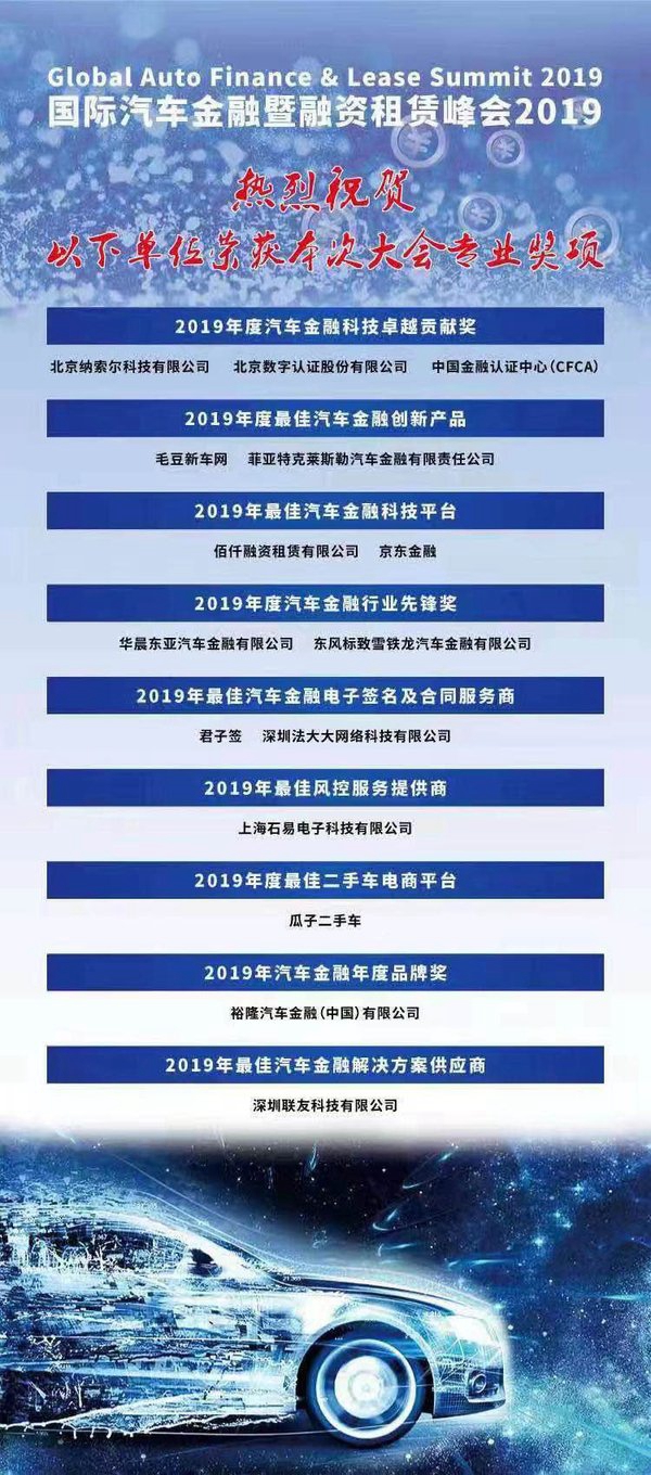颁奖环节中,佰仟租赁在激烈的角逐中脱颖而出,一举斩获“2019年最佳汽车金融科技平台”奖,这一,含金量奖项的获得,标志着业界对佰仟租赁的高度认可和大力支持。