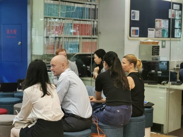 参与培训的外教在华尔街英语区域教师培训主管Kristin Francis的带领下,于华尔街英语上海中山公园,聚集。此次季度培训围绕着“一场成功的外教课中如何更合理地评判学员表现”这一主题展开。
