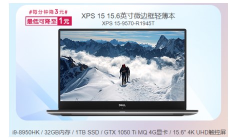喜闻乐见的降价拍环节再次登陆戴尔官网!XPS13高端轻薄本也加入了本次降价拍大军,从原价起每分钟价格下降1-3元不等,,可降至1元!