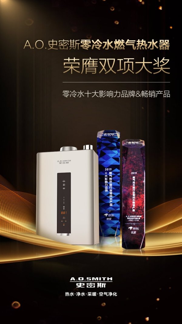 卫冕畅销榜,A.O.史密斯“零冷水”燃气热水器再获两项大奖