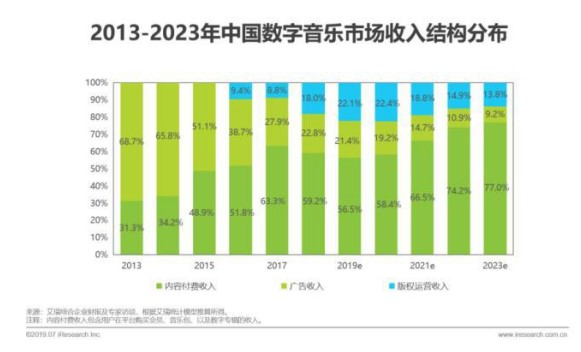 越来越多的研究数据也在为此佐证。艾瑞咨询《2019年中国数字音乐内容付费发展研究报告》显示:国内音乐付费规模持续增长,大众的付费意愿也在不断提高,数字音乐平台内容付费将成为中国数字音乐主要收入来源。另据行业网站Musically的调研,继2016、2017年连续两年市场增长超过30%后,2018年中国录制音乐产业总收入达到了5.313亿美元,较上一年同比增长了79.6%。该数据也刷新了自1950年代以来全球音乐产业历史上的新纪录。