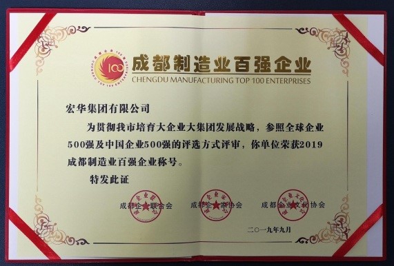 宏华集团有限公司荣获“2019年成都制造业百强”称号