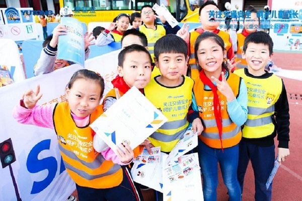 2019年11月,深圳壹基金公益基金会(以下简称壹基金)携手宇通,发起“宇通壹基金儿童交通安全公益行”活动。以“关注交通安全、呵护儿童成长”为主题,以壹基金联合宇通、中国教育发展战略学会共同开发的一套儿童安全教育活动为核心,通过交通安全公益行、交通安全动画视频、交通安全绘本、交通安全操等涵盖“看、听、读、写”的全方位体验,来帮助更多的孩子提升安全感知能力和应对能力,有效减少交通安全事故的发生。