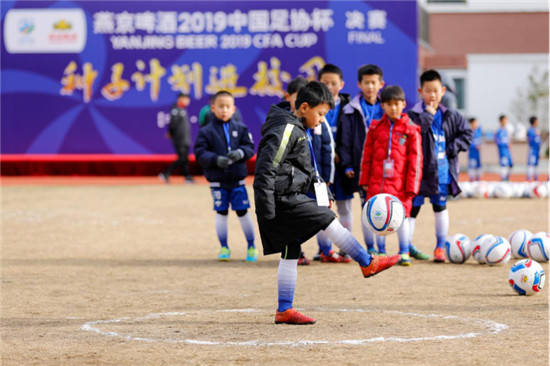 12月6日,燕京啤酒2019中国足协杯“种子计划”校园公益活动走进上海闵行区实验小学莘松校区。活动现场,邀请了业内专业青训团队对上海五所学校的35名精英小球员做足球专业基础测试。经过两轮测试和对抗赛后,当天表现,秀的8名小学生作为牵手球童走进今晚足协杯决赛现场。
