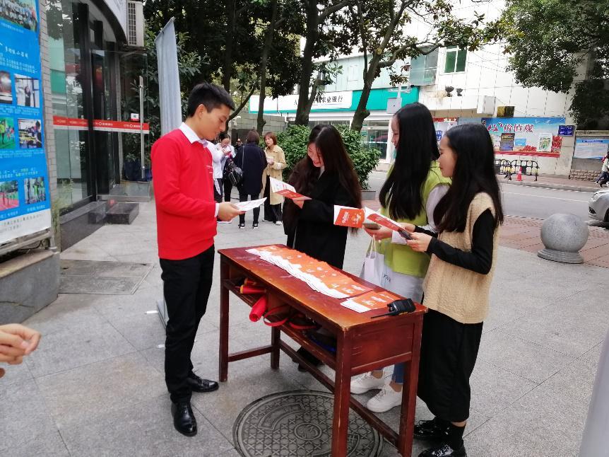 志愿者们在校园内散发折页,和学子们亲密交流,普及金融防骗知识,增强金融消费意识。