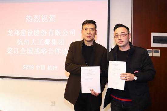 2019年12月上旬,大王椰板材与龙版建设正式签订战略合作协议,将遵照平等互利、资源共享的原则,依托各自优势,逐步推进在建筑工程等领域的交流合作。