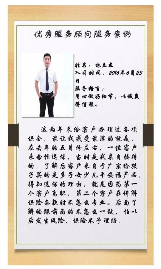 平安人寿邢台中支 优秀服务顾问服务案例