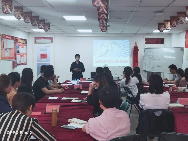 首先,和业务队伍一起学习《反保险欺诈指引》及保险欺诈涉及的相关法律知识;其次,还通过例举近年来常见的欺诈案例,宣讲保险欺诈的危害性;,,现场宣讲网点重疾案件管控流程等一系列措施,营造反保险欺诈宣传氛围。三管齐下,对反保险欺诈的学习内容进行全面覆盖,从而提高网点队伍自身对保险欺诈危害性的认知,从而提升队伍反保险欺诈意识及对欺诈行为的警觉性,减少保险欺诈发生的可能性。